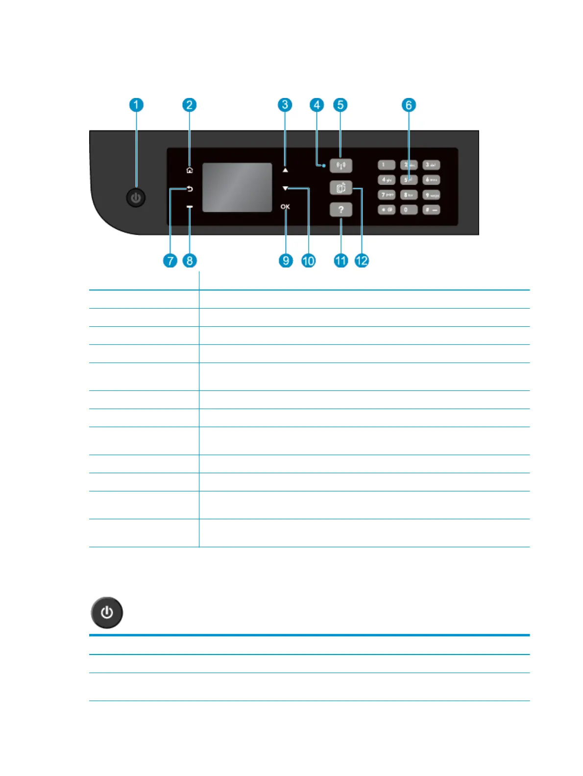 5 Wireless button: Press the button to view wireless status and menu options. Press and hold down