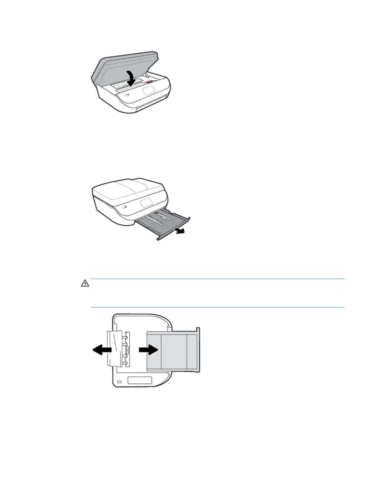 c. Check the gap in the printer where the input tray was. If there is any jammed paper, reach into the