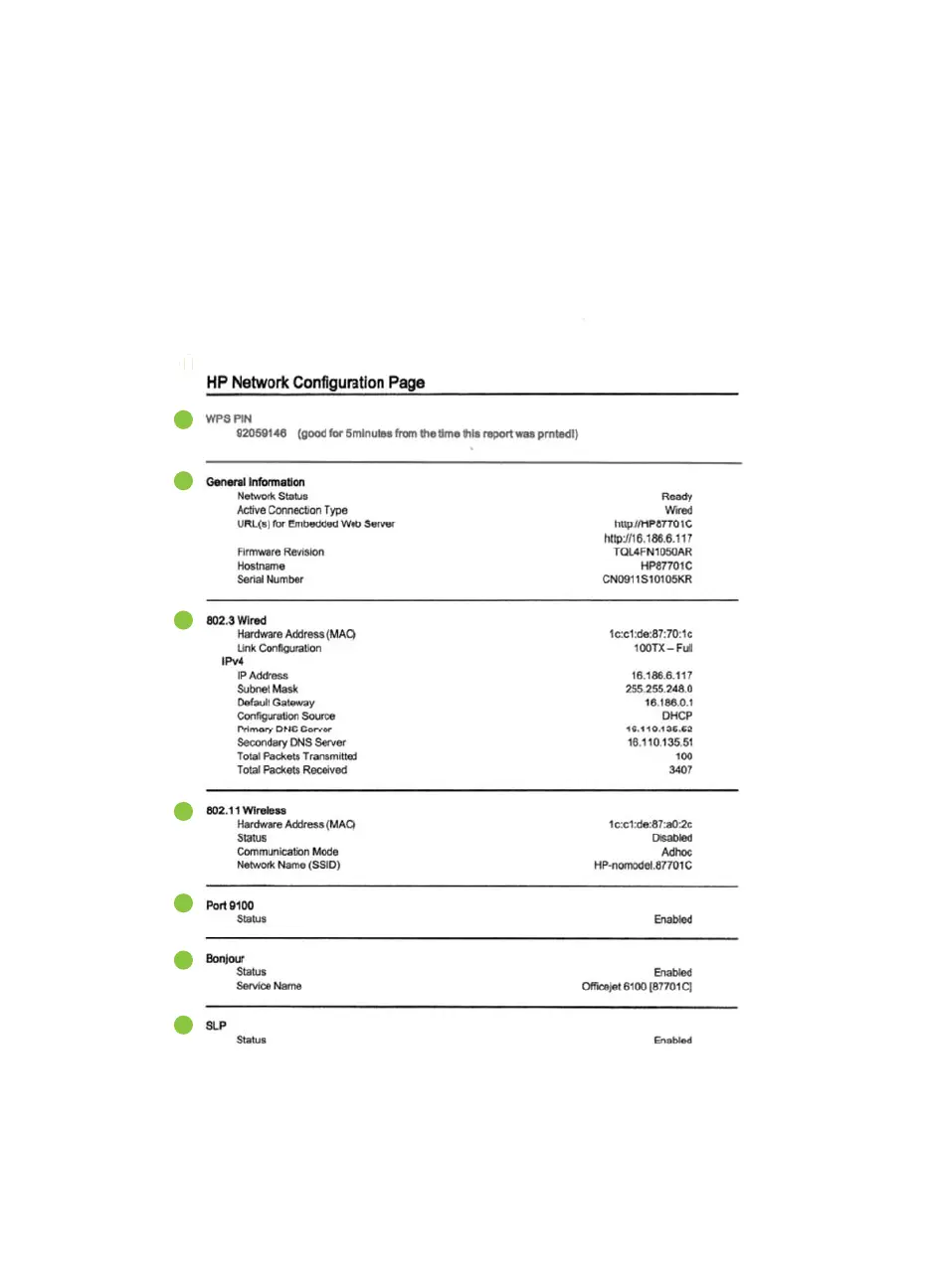 Als de printer is aangesloten op een netwerk, kunt u een netwerkconfiguratiepagina