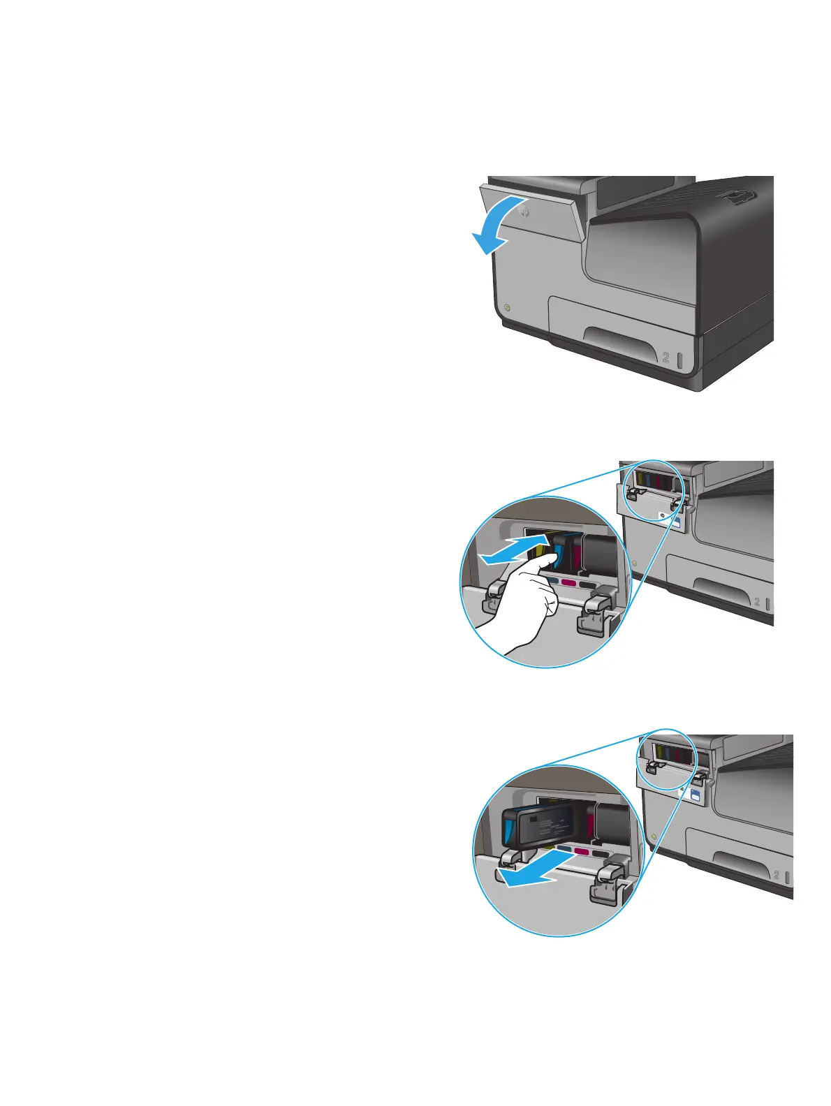 The product uses four colors and has a different ink cartridge for each color: yellow (Y), cyan (C), magenta