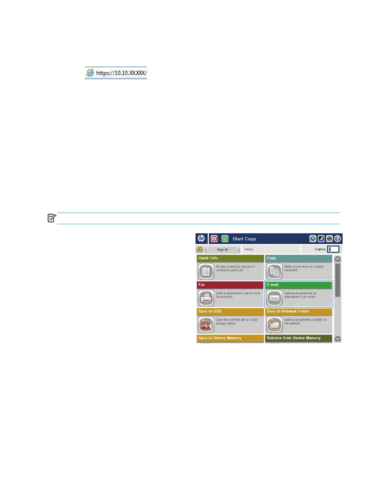 displays on the product control panel. Press the Enter key on the computer keyboard. The EWS
