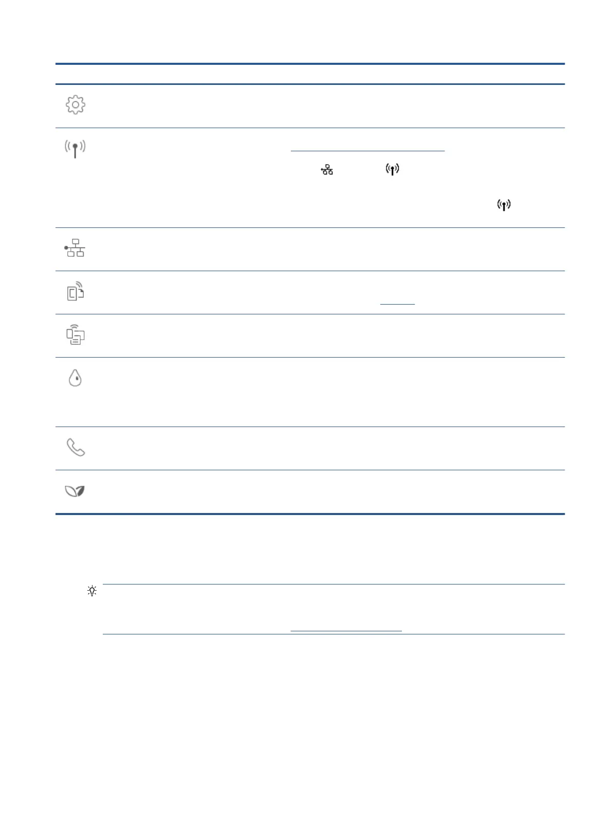 Fi Direct, Web Services setup, fax setup, and other maintenance settings and