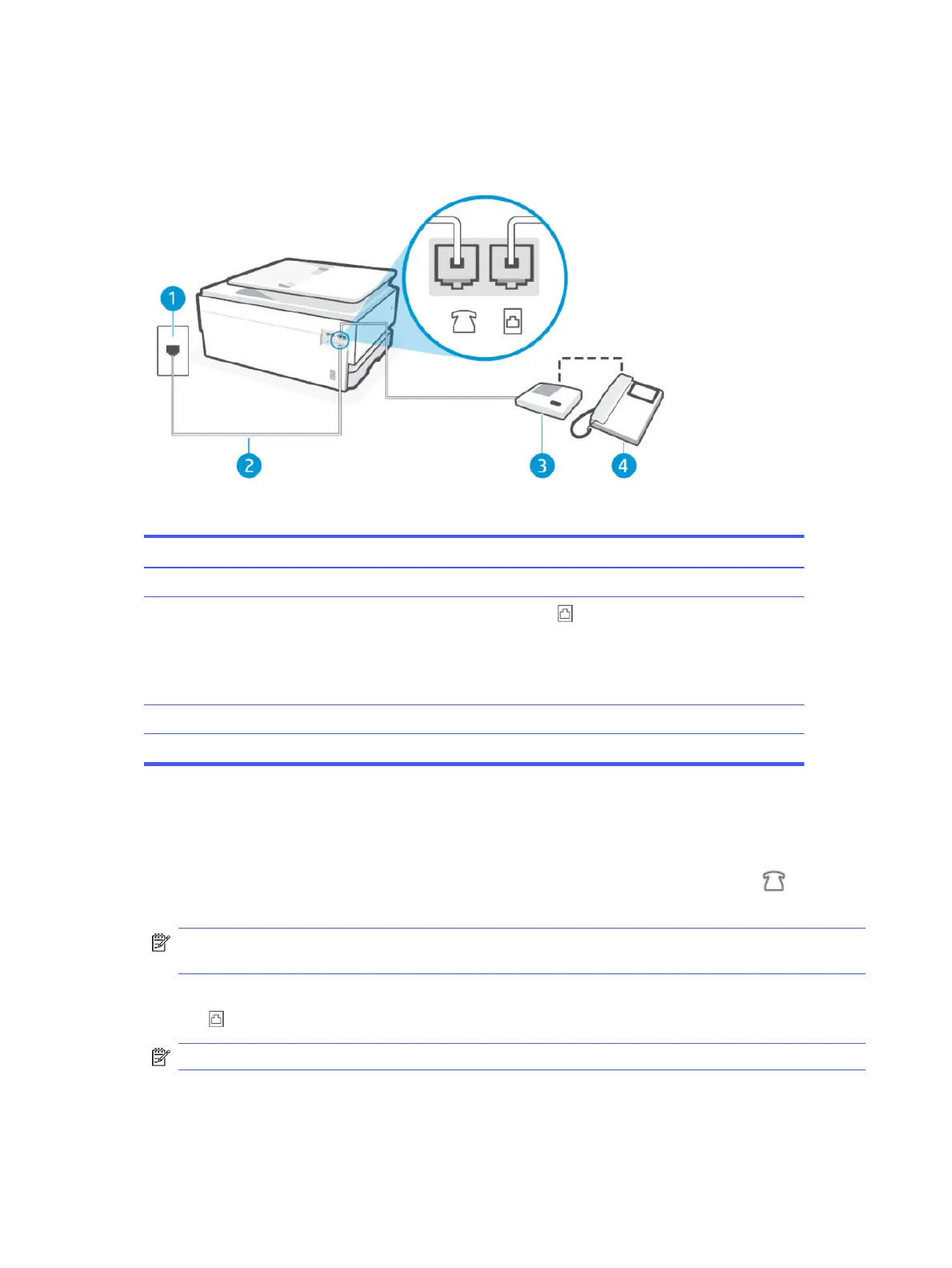 Follow these steps to set up the printer with a shared voice/fax line with answering machine.