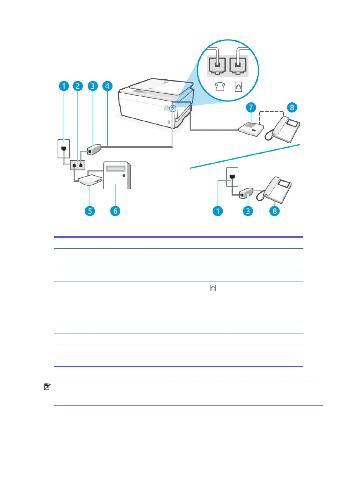 NOTE: You need to purchase a parallel splitter. A parallel splitter has one RJ-11 port on the front and two