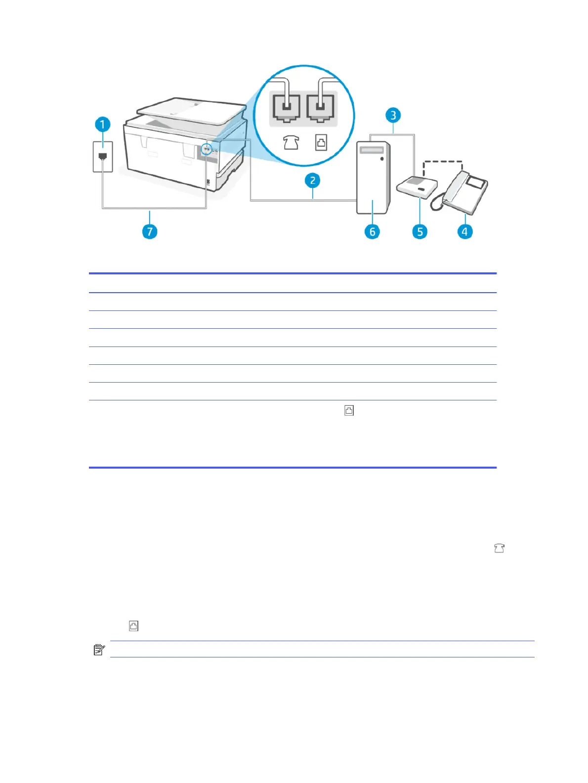 Follow these steps to set up the printer on the same phone line as a computer with two phone ports.