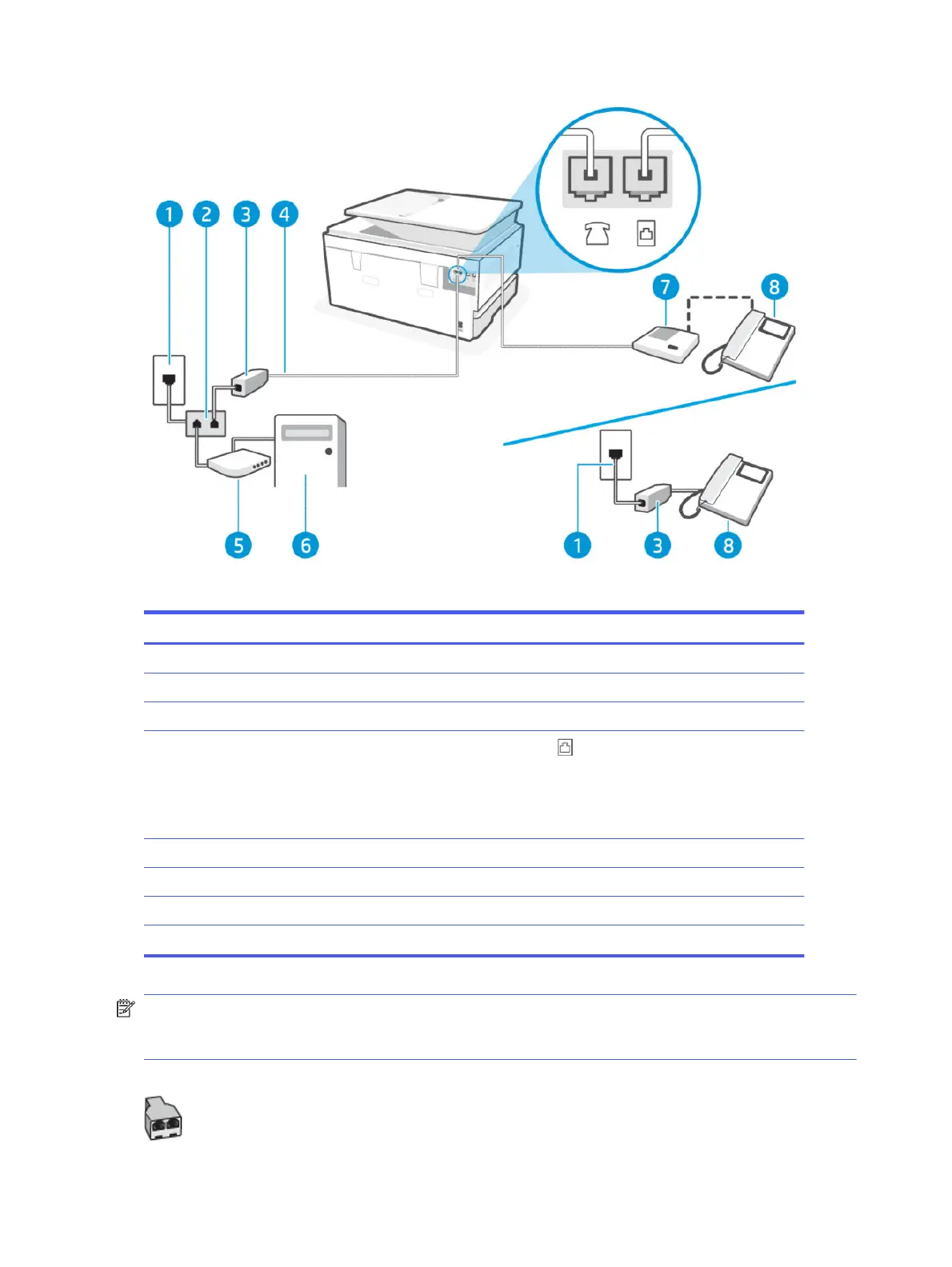 NOTE: You need to purchase a parallel splitter. A parallel splitter has one RJ-11 port on the front and two