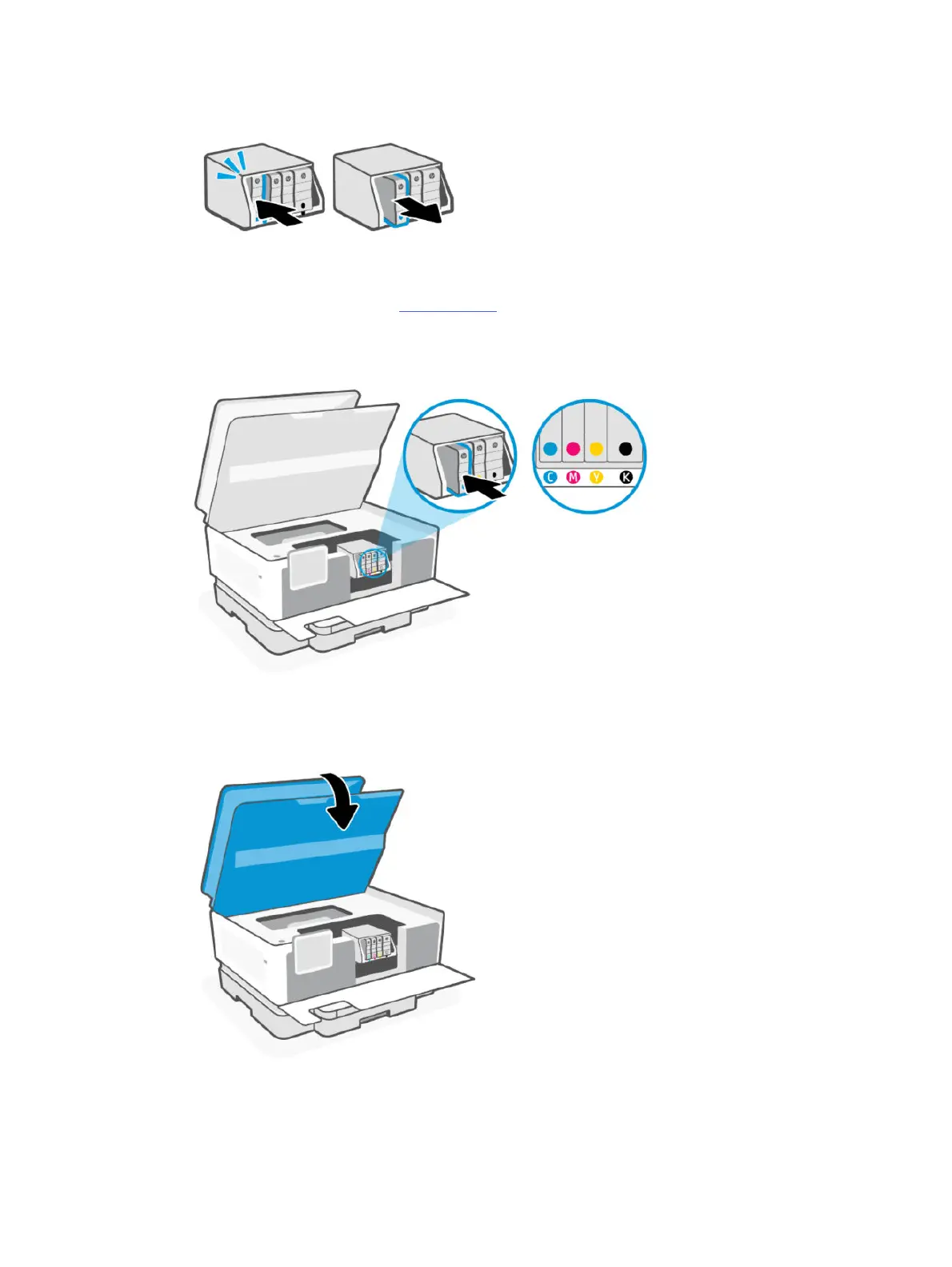 6. Insert each cartridge securely into the indicated slot. Make sure the color-coded letter on the cartridge