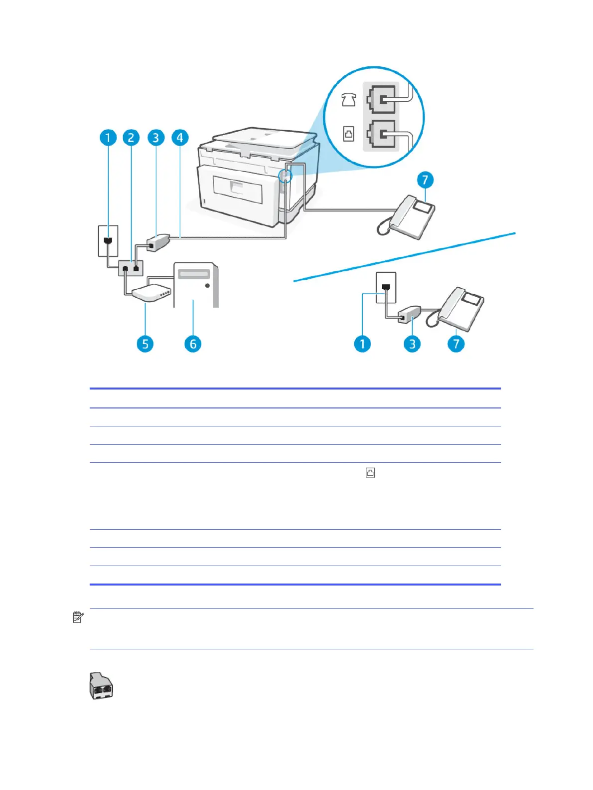 NOTE: You need to purchase a parallel splitter. A parallel splitter has one RJ-11 port on the front and two