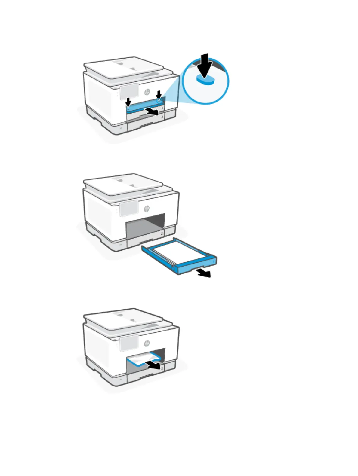 3. Check the area inside the printer where the trays were removed, and remove any jammed paper found.
