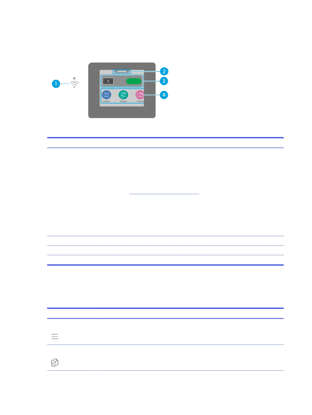 1 Wi-Fi-lampje Geeft de Wi-Fi-verbindingsstatus van de printer aan.