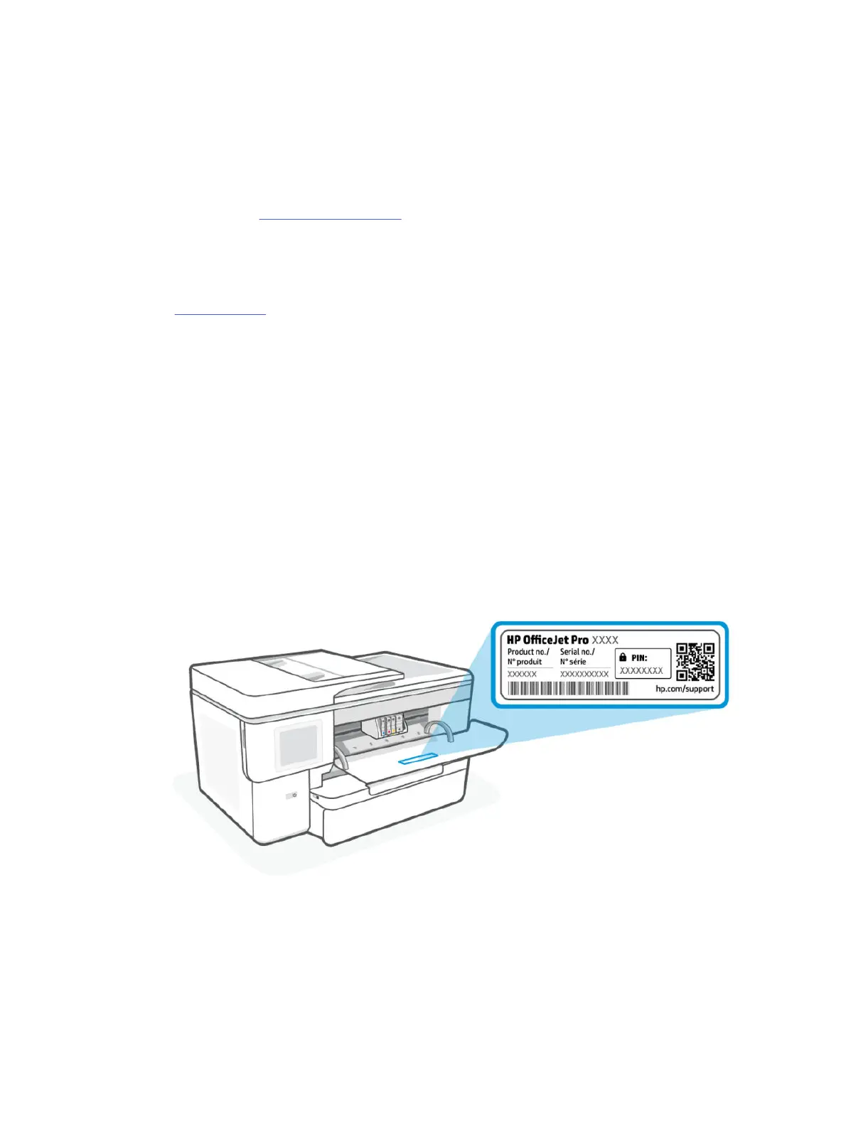 ● Productnummer en serienummer (in de buurt van de cartridgetoegang)