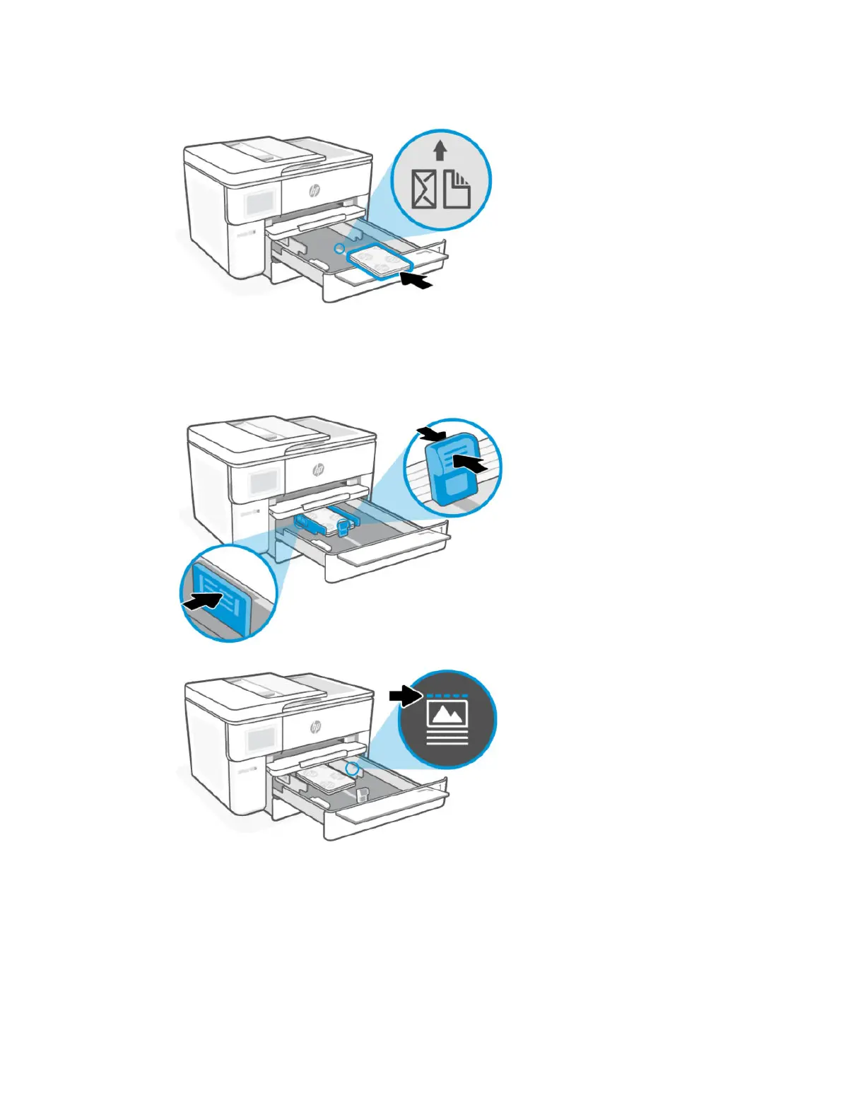4. Stel de papiergeleiders bij tot ze de randen van de stapel kaarten of foto's raken en keer de ladeklep om.