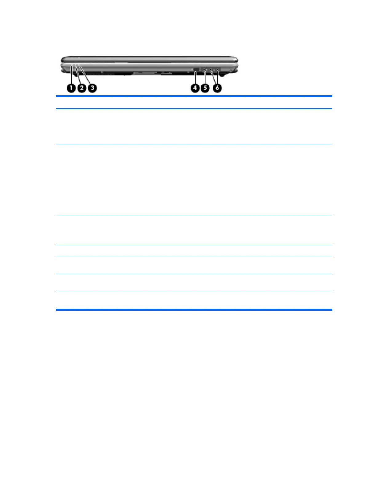 (5) Audio-in (microphone) jack Connects an optional computer headset microphone, stereo array