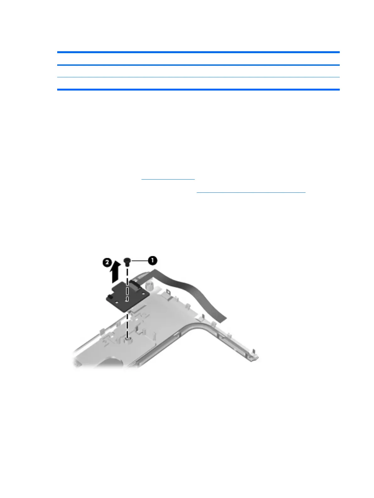 2. Remove the Phillips PM2.5×4.0 screw (1) that secures the power button board to the switch cover.