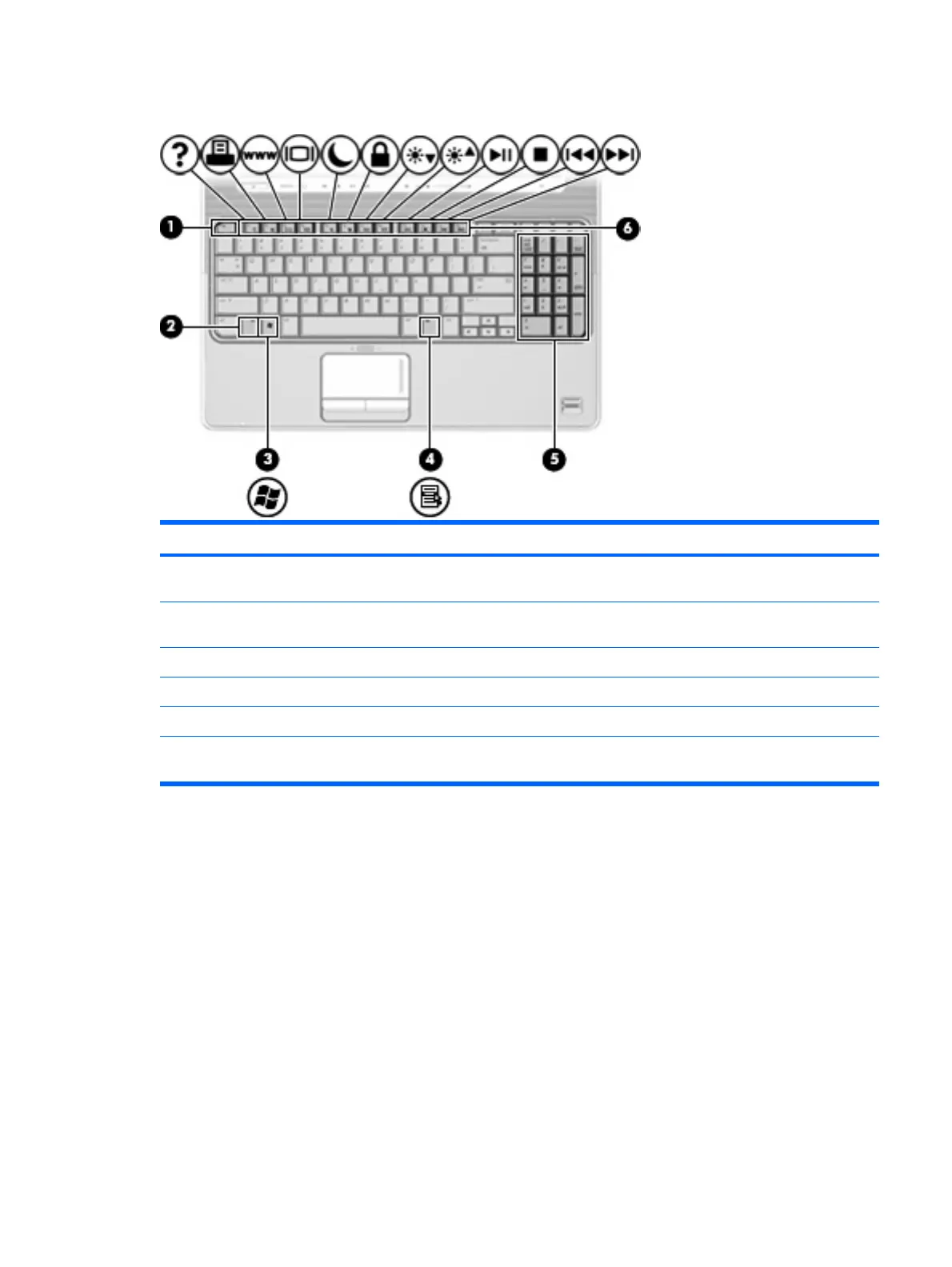 (4) Windows applications key Displays a shortcut menu for items beneath the pointer.