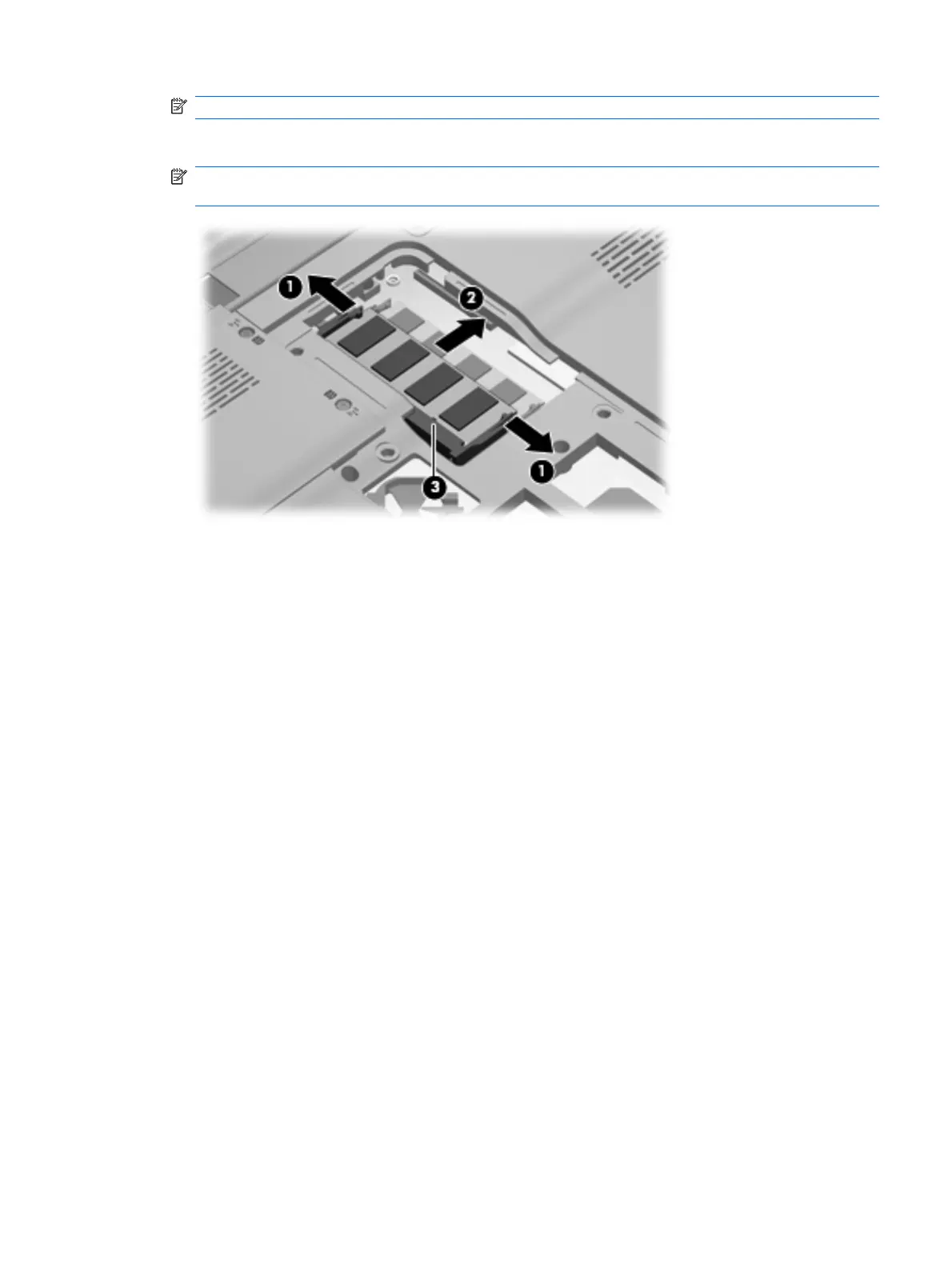 NOTE: Memory modules are designed with a notch (3) to prevent incorrect insertion into the