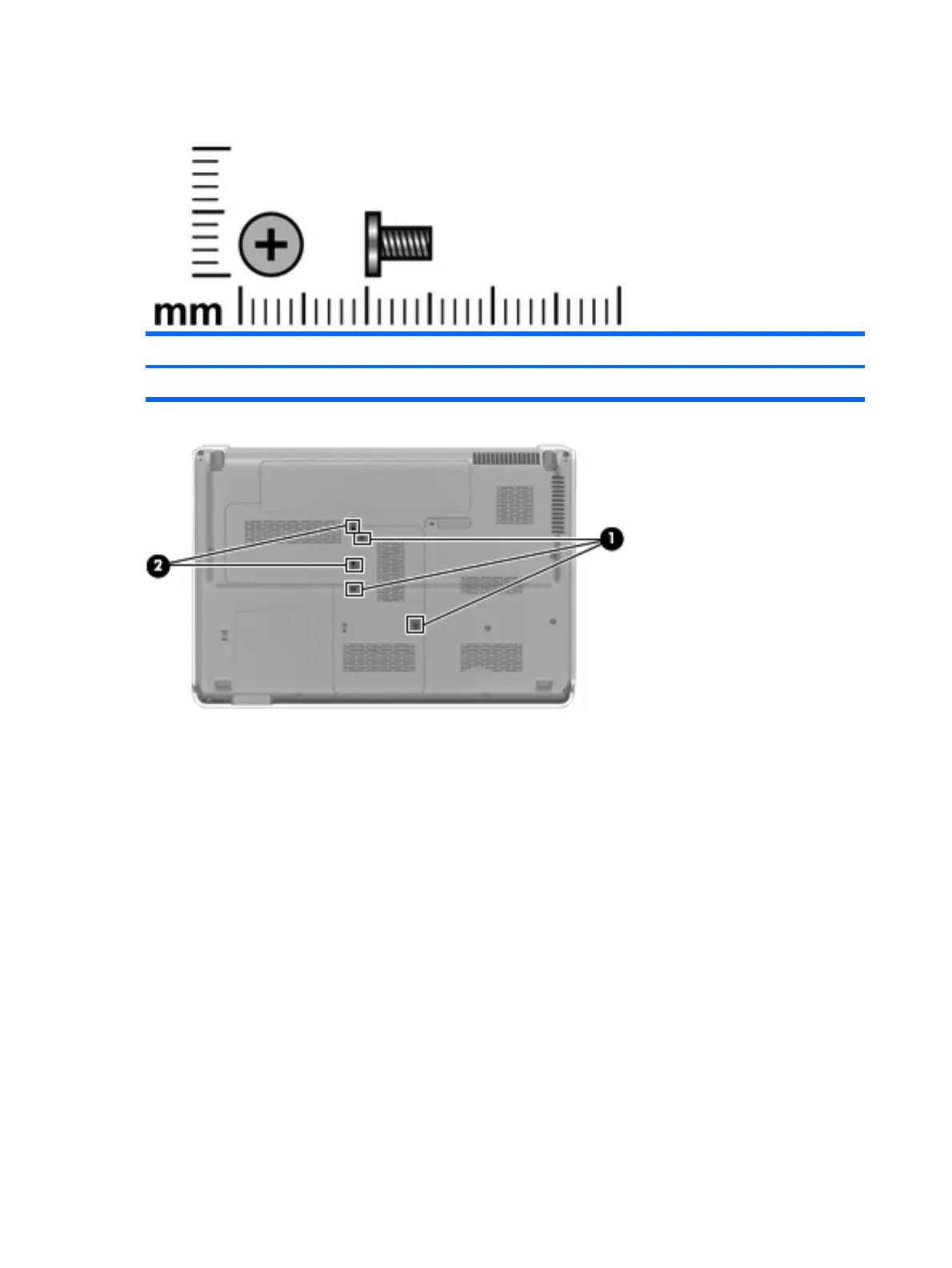 (2) Two captive screws that secure the hard drive bay cover to the computer (screws are secured by C-
