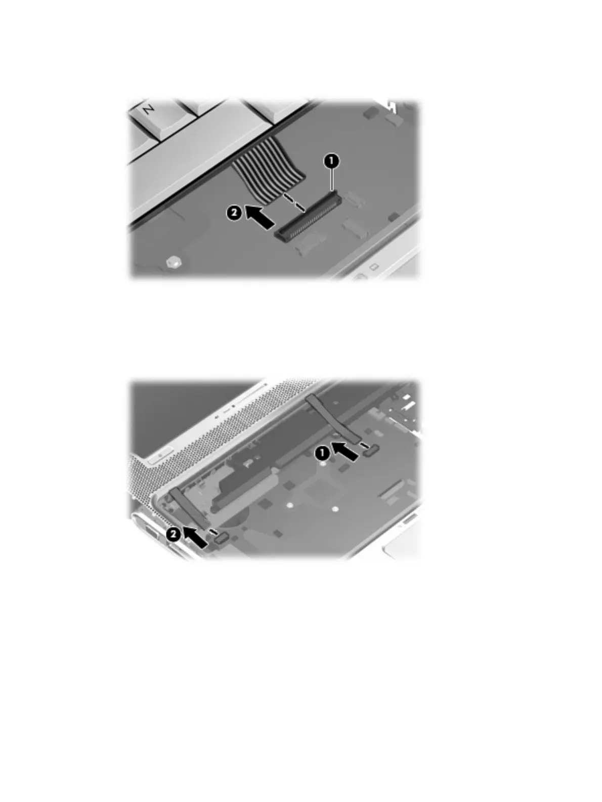 10. Release the zero insertion force (ZIF) connector (1) to which the keyboard cable is connected and