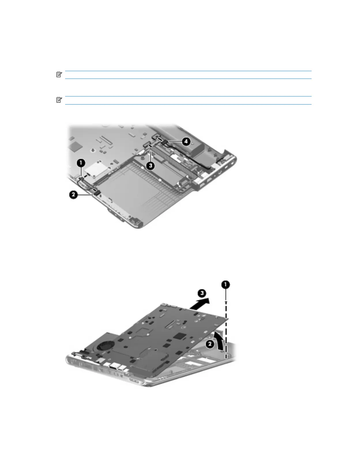 5. Remove the system board (3) by sliding it up and to the right at an angle.