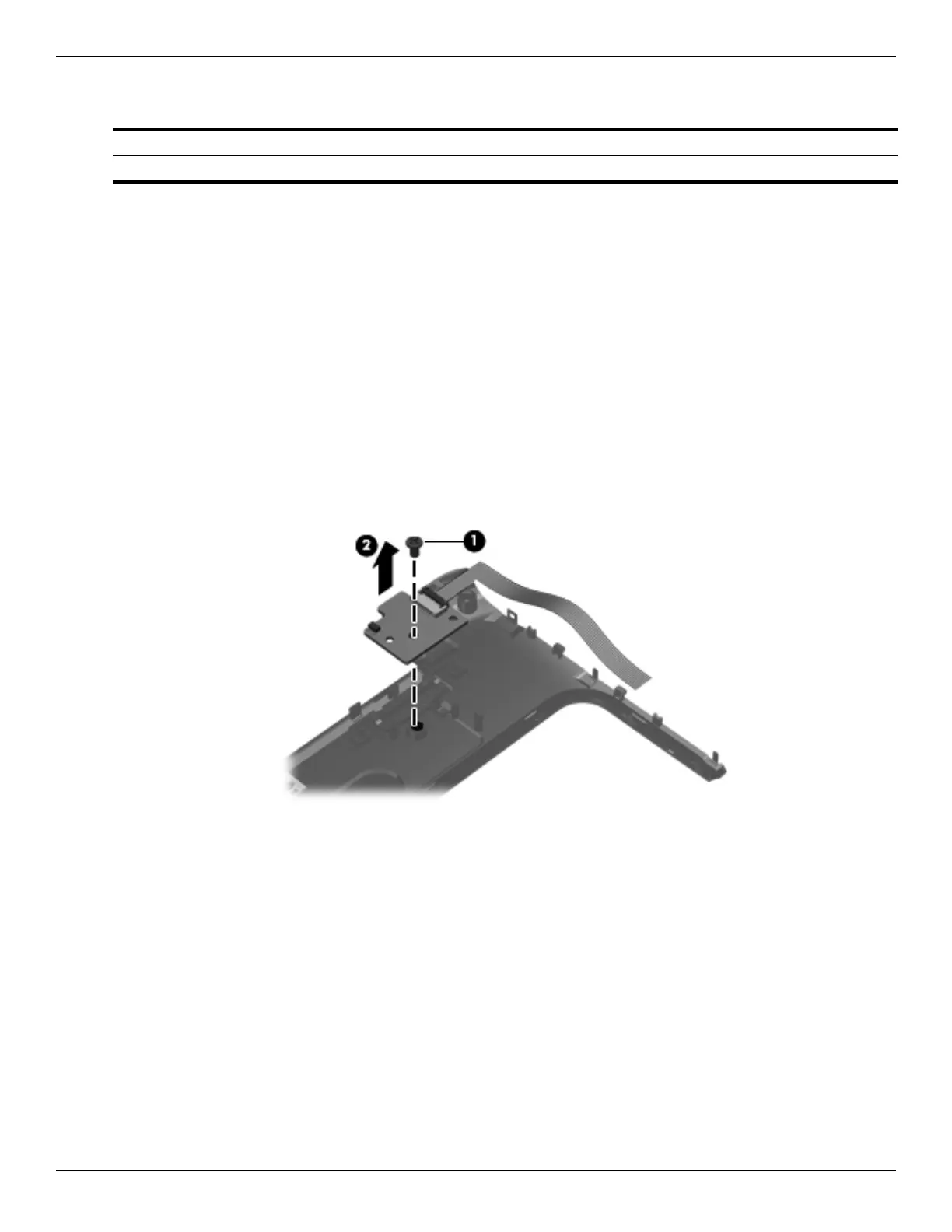 2. Remove the Phillips PM2.0×4.0 screw 1 that secures the power button board to the switch cover.