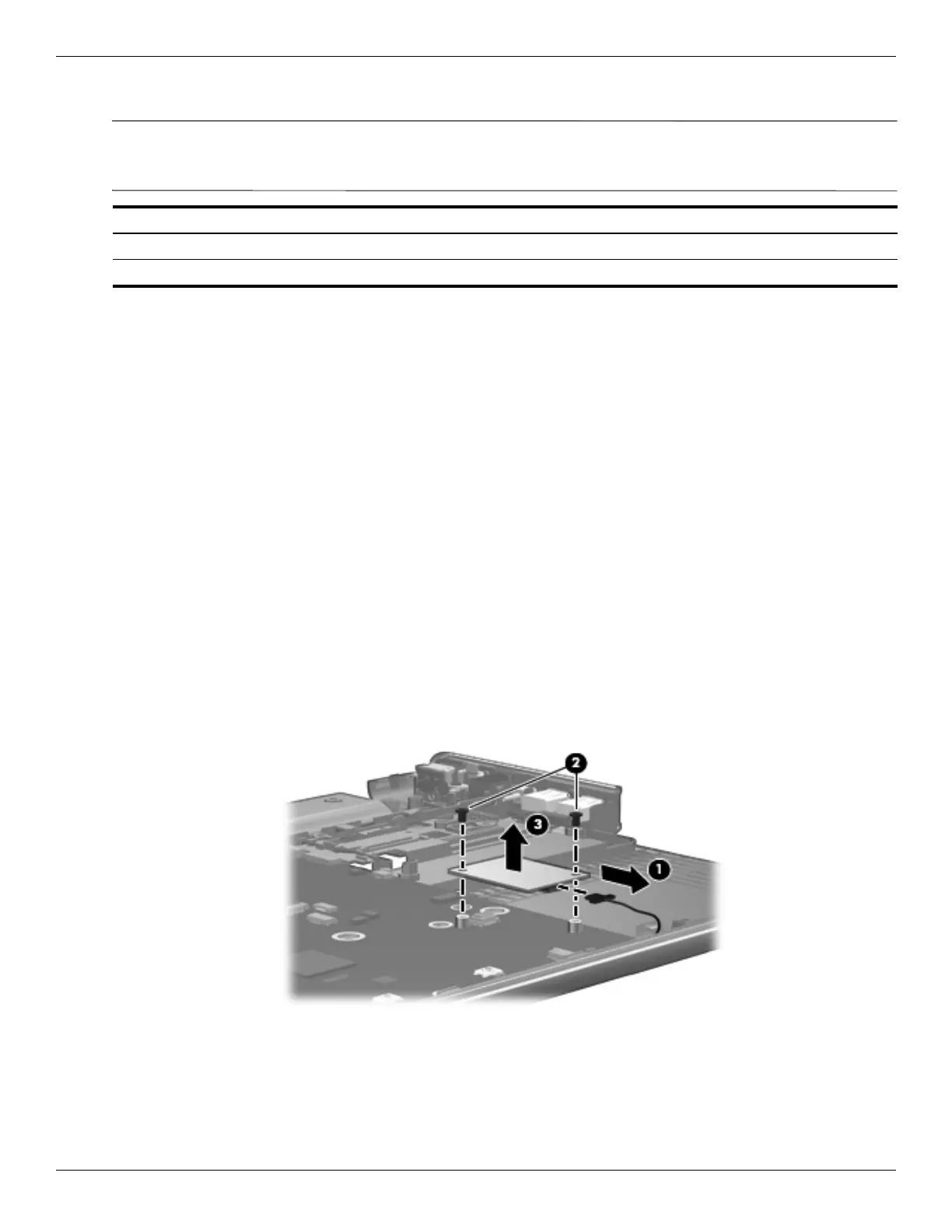 3. Lift the modem module 3 straight up to disconnect it from the system board.