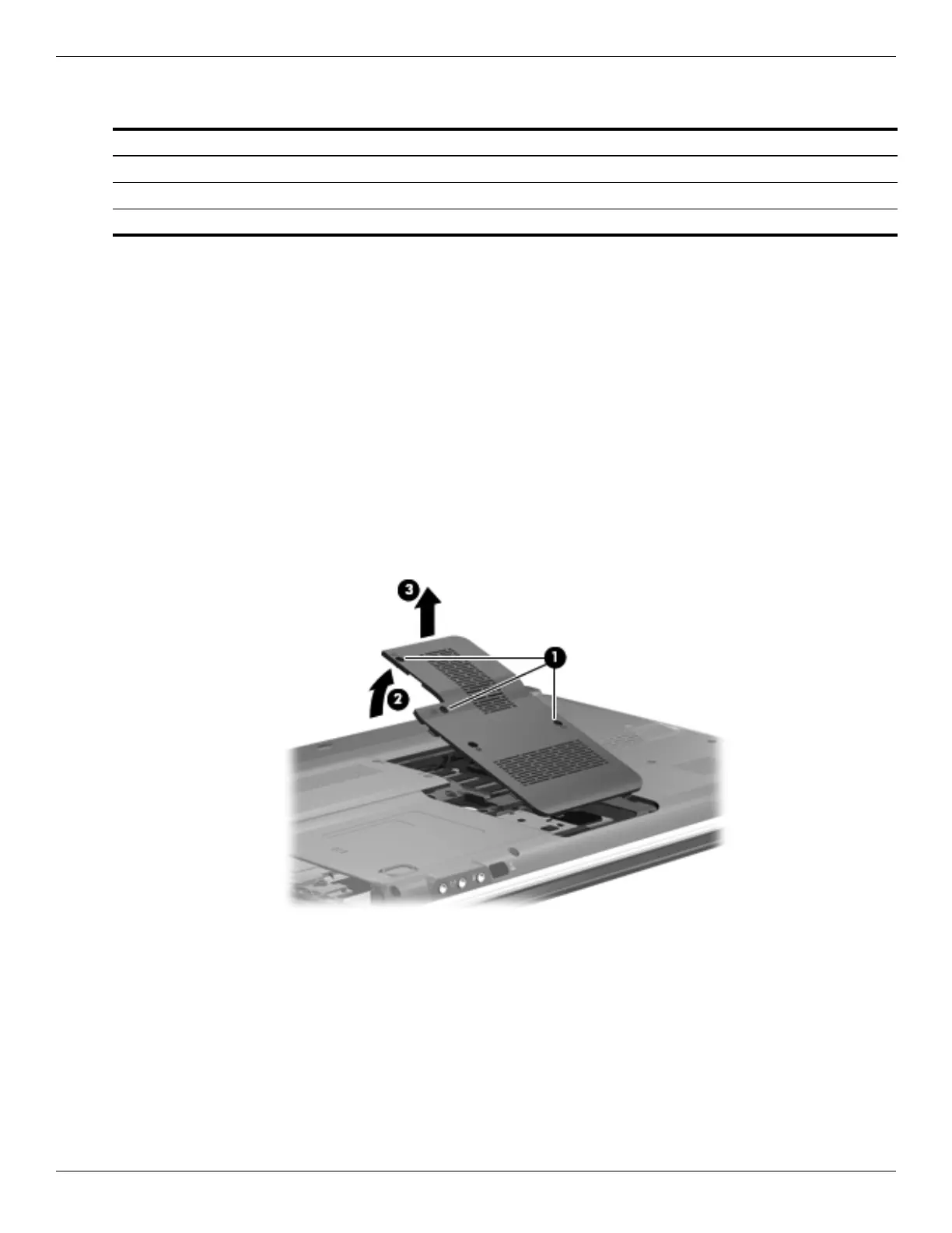 3. Lift the rear edge 2 of the cover, swing it up and to the front, and remove the cover 3. The memory module