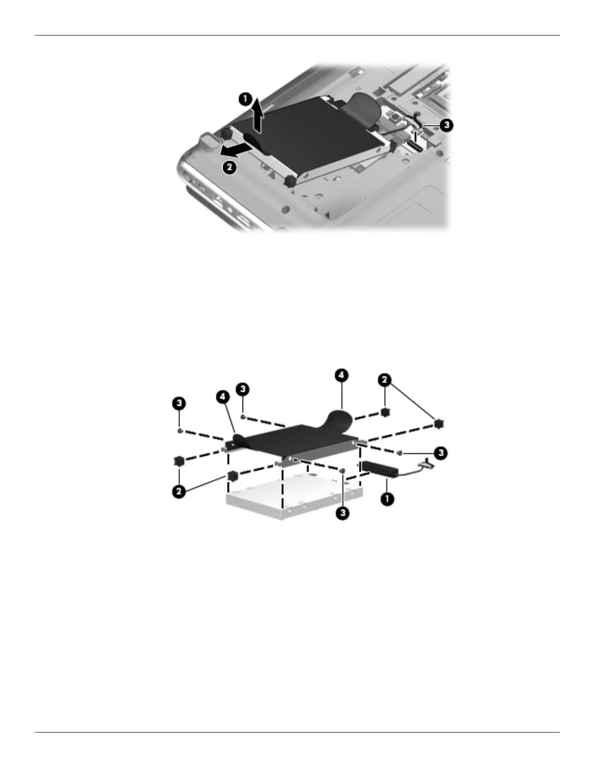 7. If it is necessary to replace the hard drive bracket or any of the hard drive bracket components, remove the