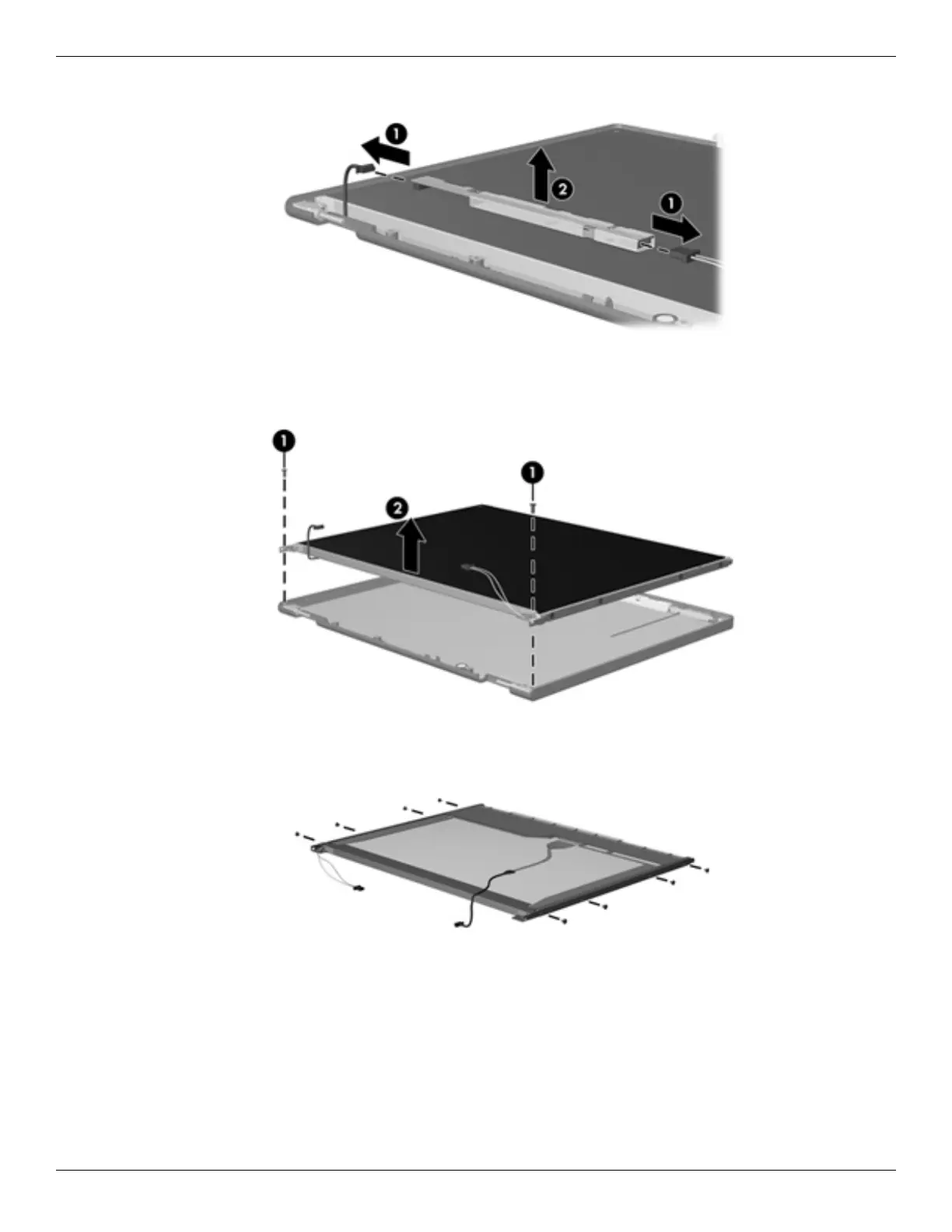 5. Remove all screws 1 that secure the display panel assembly to the display enclosure.