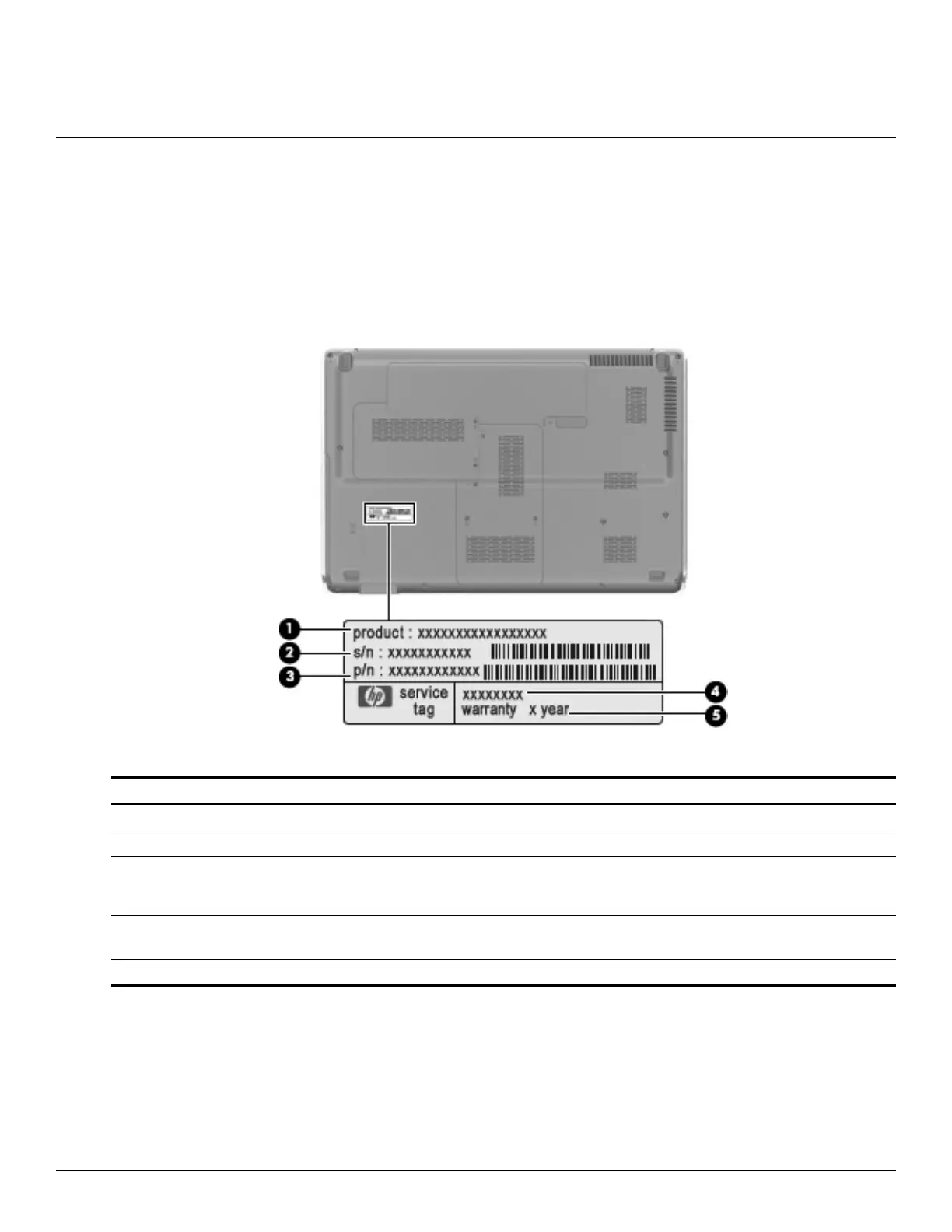 5 Warranty period This number describes the duration of the warranty period for the computer.