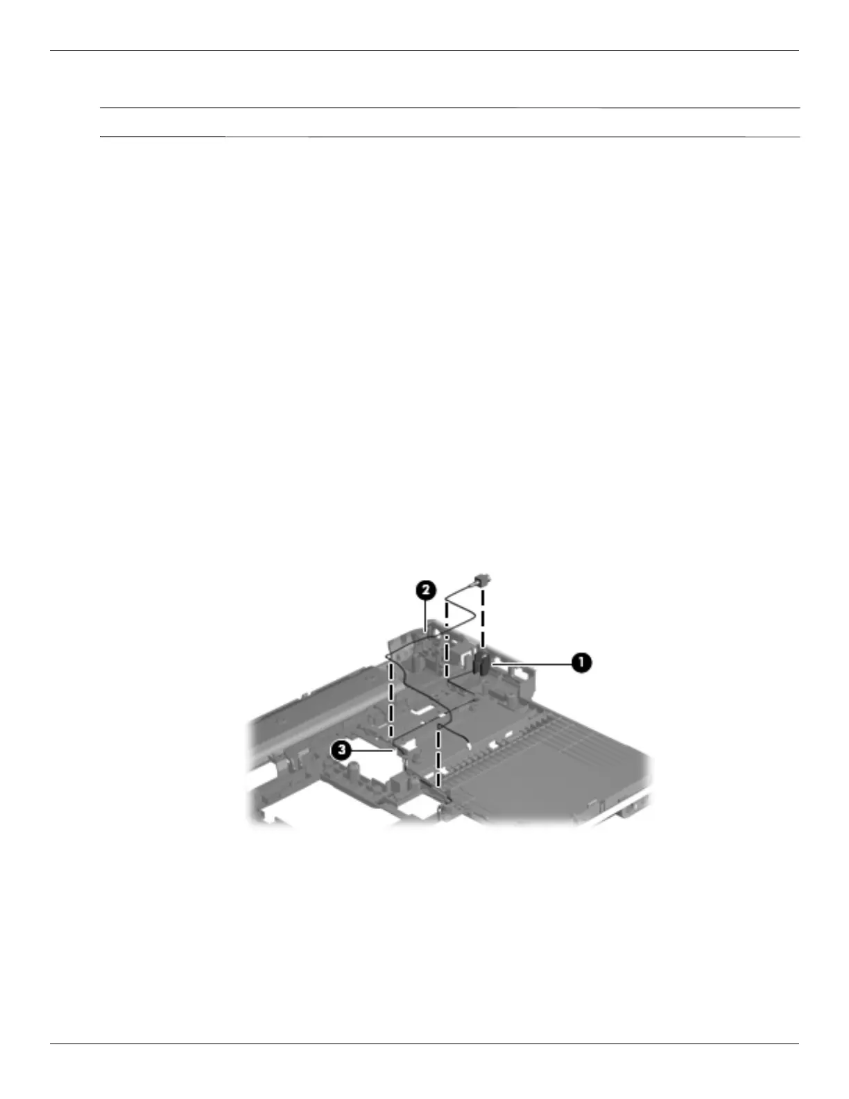 2. Remove the TV tuner module cable 2 from the clips and routing channel 3 built into the base enclosure.