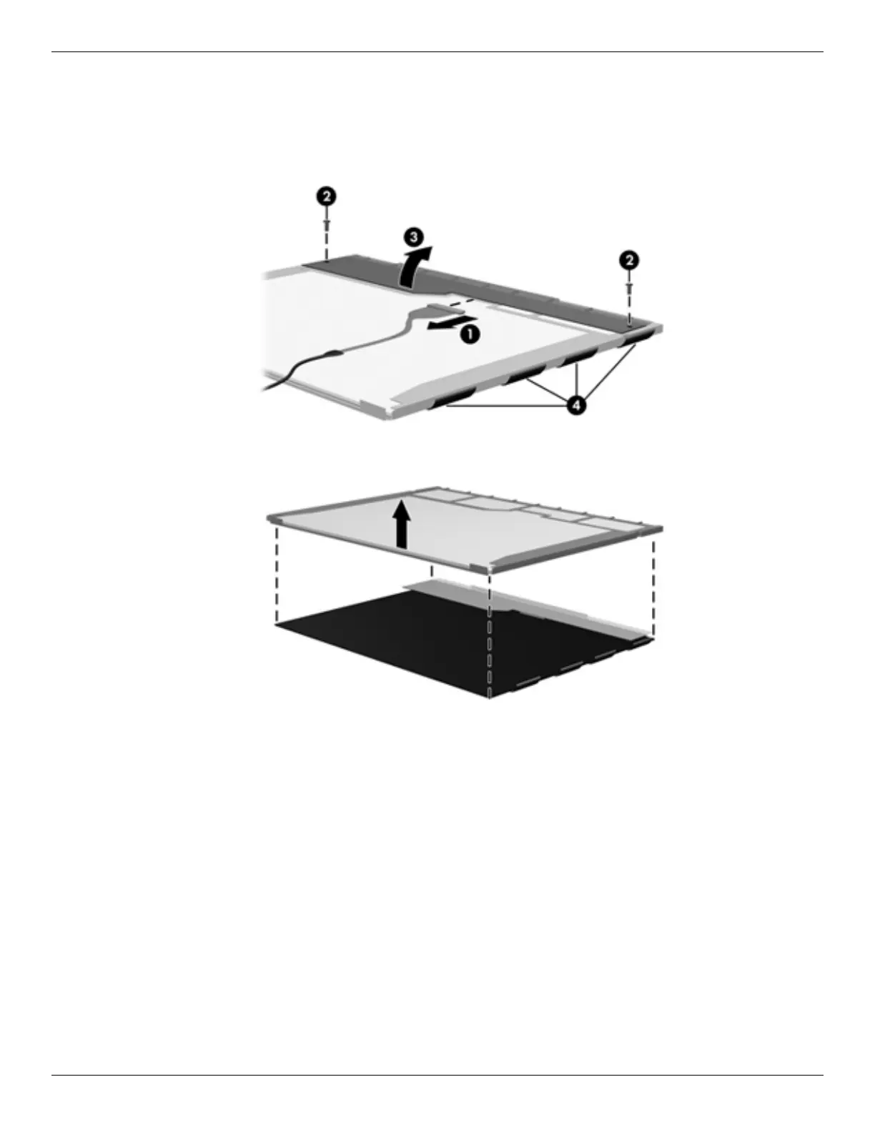 20. Remove the screws 2 that secure the LCD panel to the display rear panel.