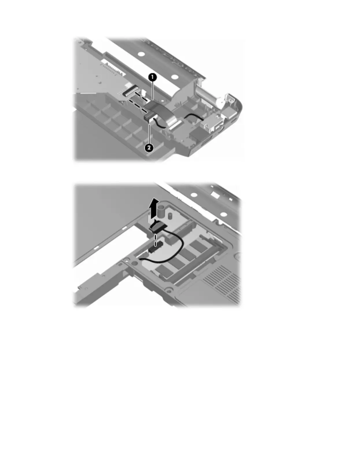 2. Lift up on the right side of the system board until it is at approximately a 45-degree angle (1).