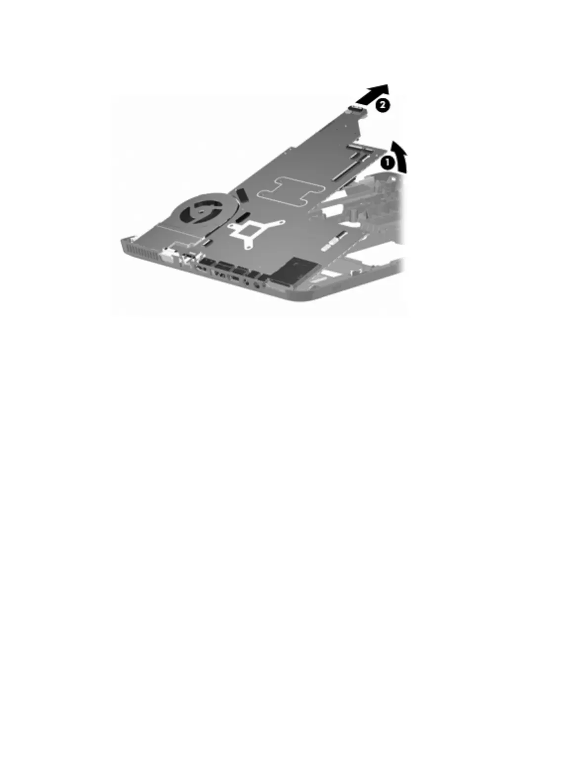 Lift the system board to the right and up and out of the base enclosure (2).