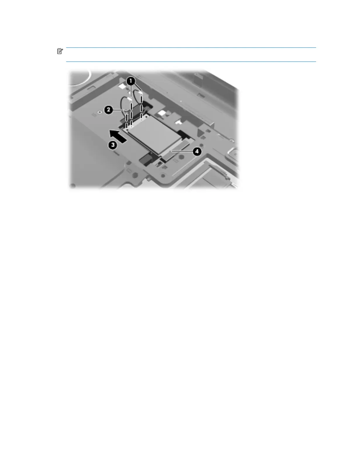 NOTE: WLAN modules are designed with a notch (4) to prevent incorrect insertion into the WLAN