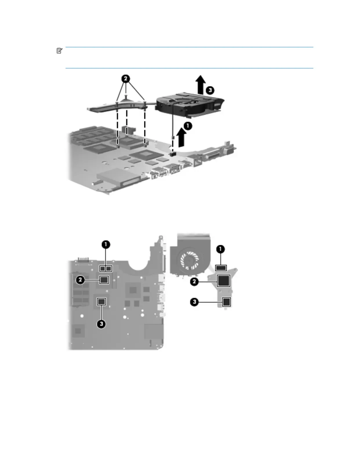 assembly and system board components, it may be necessary to move the fan/heat sink assembly