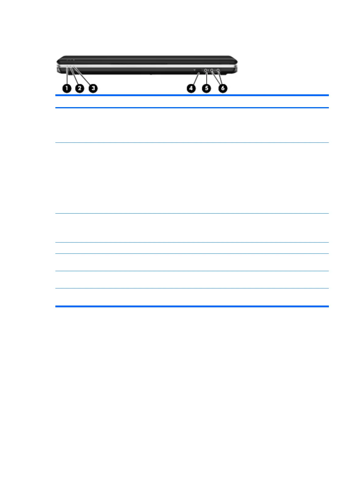 (5) Audio-in (microphone) jack Connects an optional computer headset microphone, stereo array