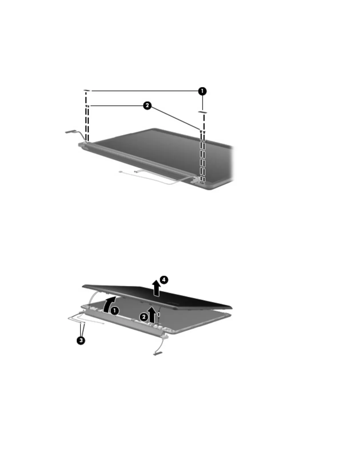 10. Remove the display enclosure (4). The display enclosure is available using spare part number