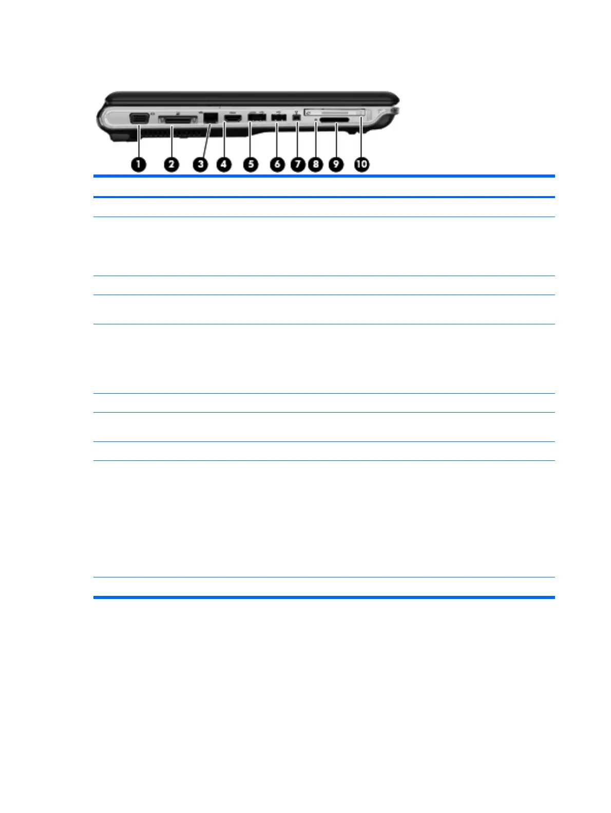 (10) ExpressCard slot Supports optional ExpressCard/54 cards.