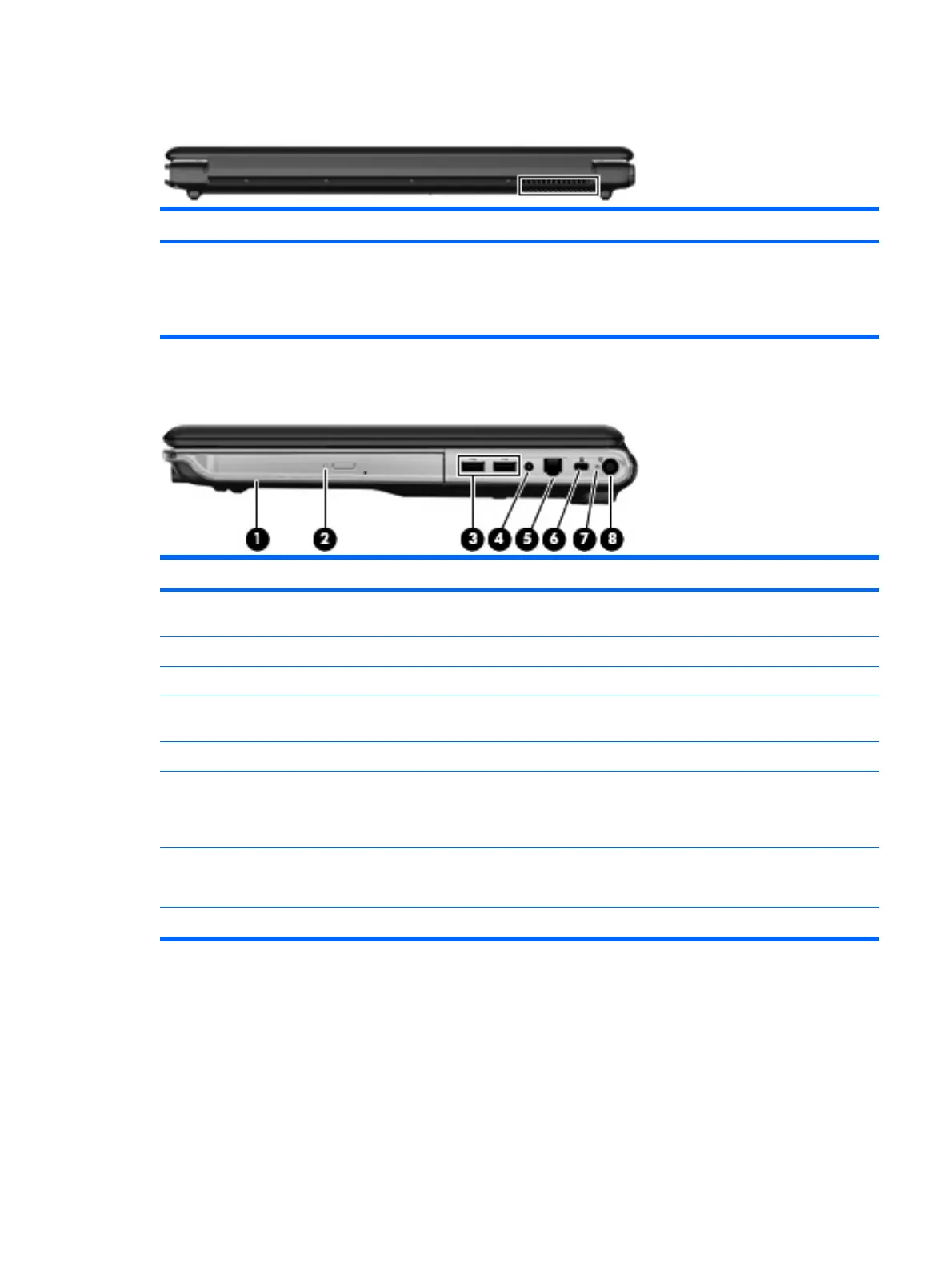 (5) RJ-11 (modem) jack (select models only) Connects a modem cable.