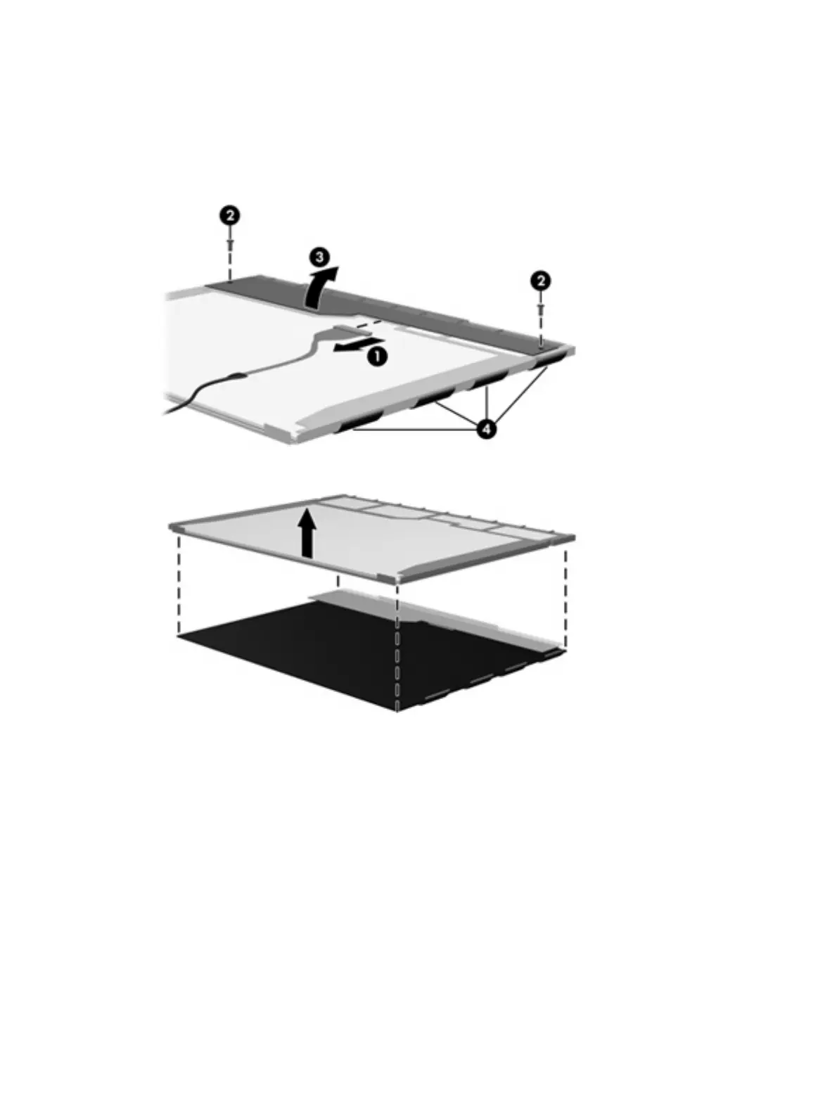 22. Release the tape (4) that secures the LCD panel to the display rear panel.