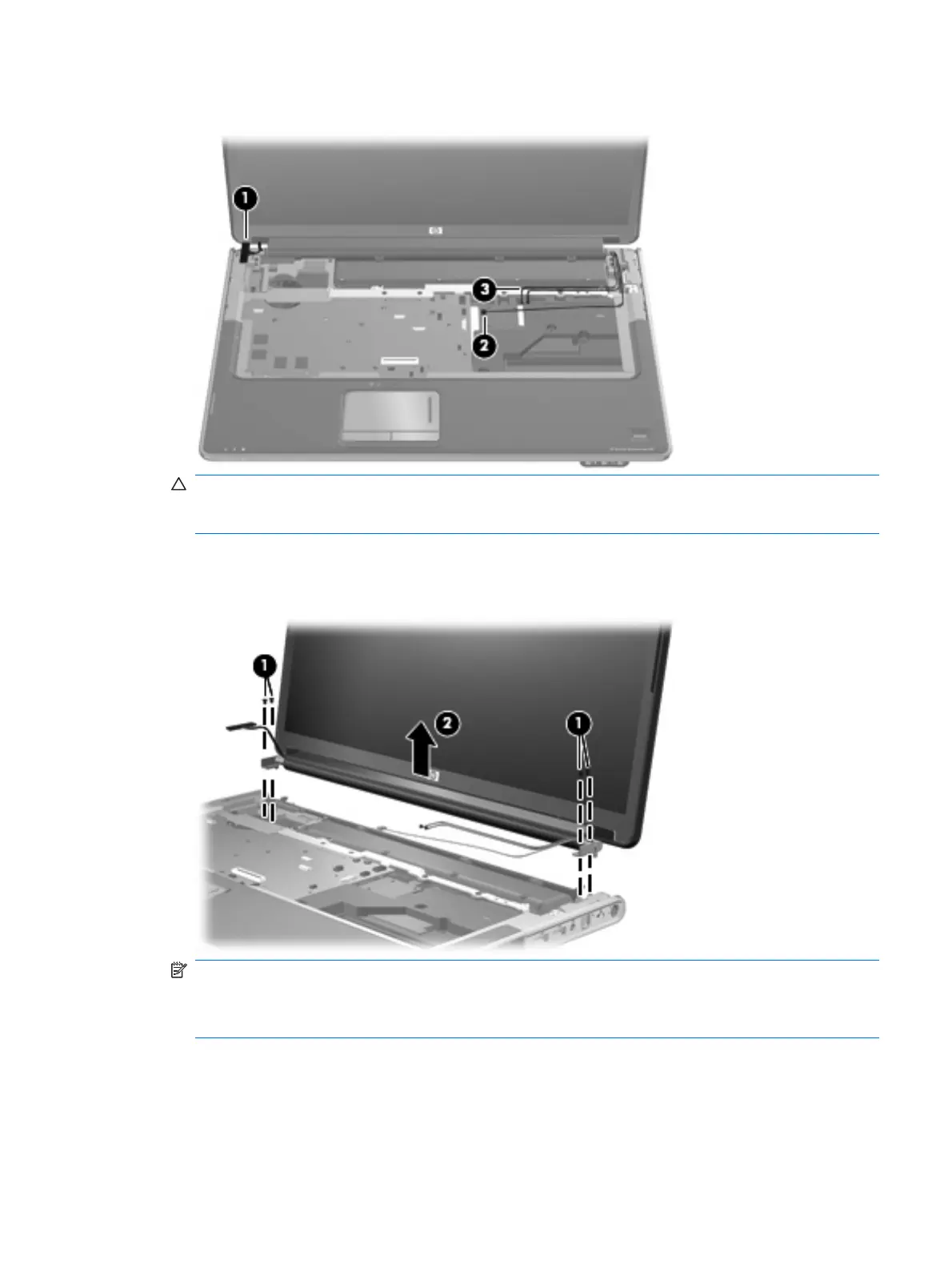 2. Remove the WLAN antenna cables from the clips (3) built into the top cover.