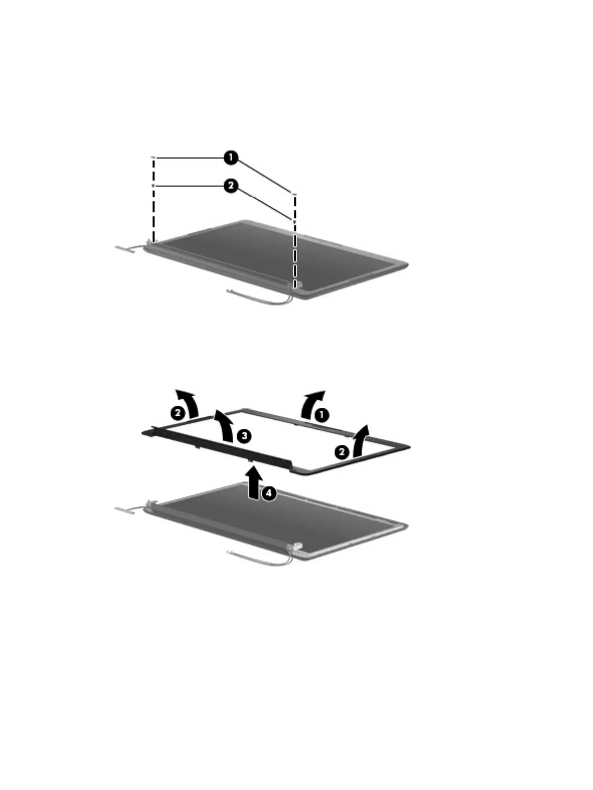 21. Remove the display bezel (4). The display bezel is available using the spare part number