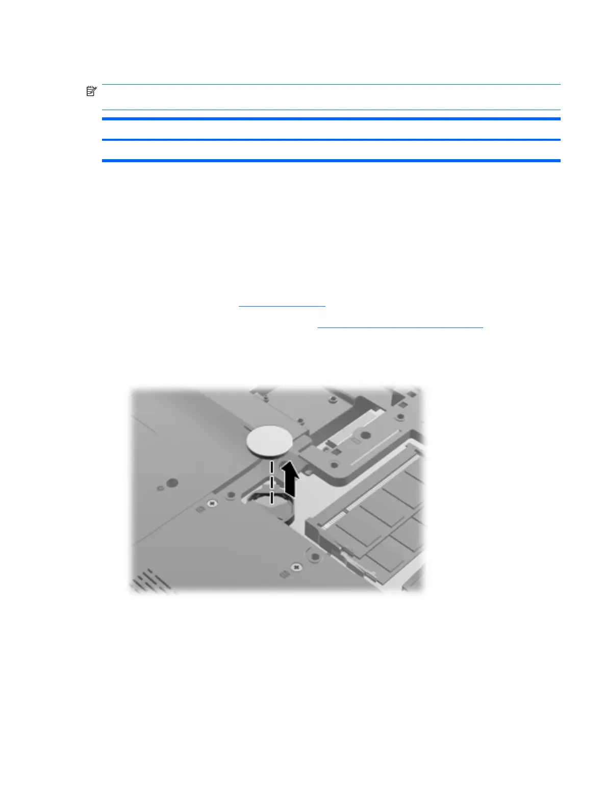 NOTE: Removing the RTC battery and leaving it uninstalled for 5 or more minutes causes all