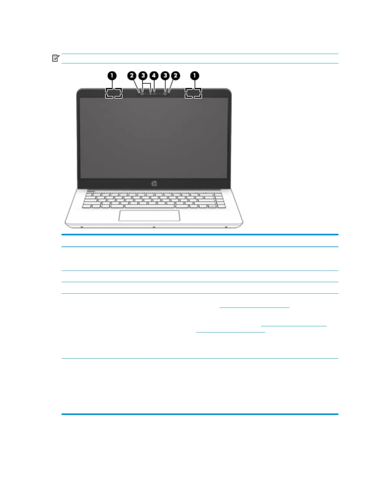 (1) WLAN-antennes* (1 of 2) Via deze antennes worden draadloze signalen verzonden en