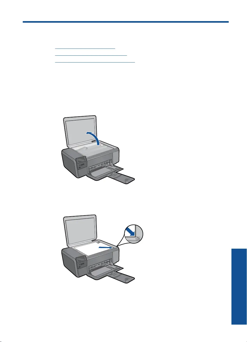 b. Plaats het origineel met de bedrukte zijde naar beneden tegen de rechter