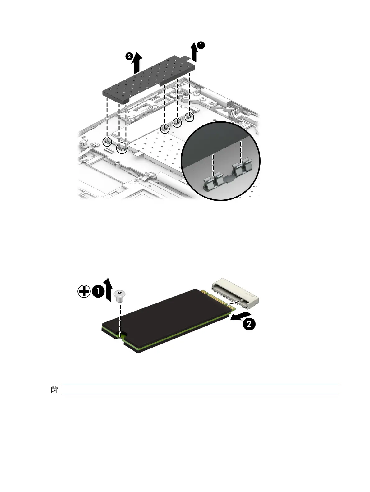 3. Pull the solid-state drive (2) away from the socket to remove it.