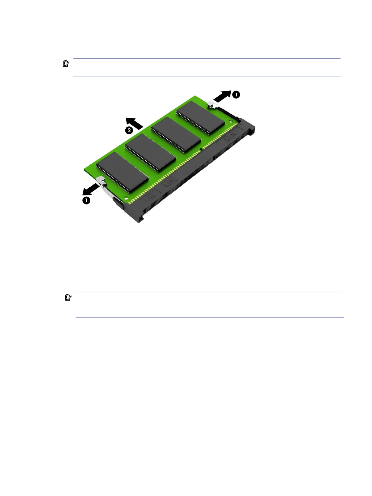 remove the module (2). Use the same procedure to remove all memory modules.