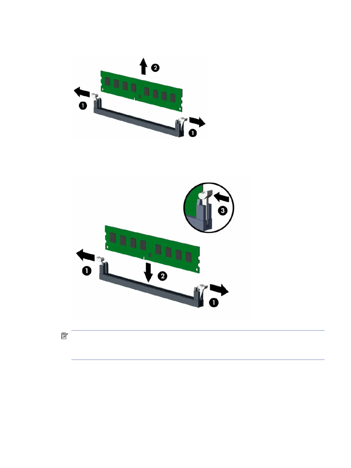 memory module (2) into the socket. Press the module down into the socket so that the module is