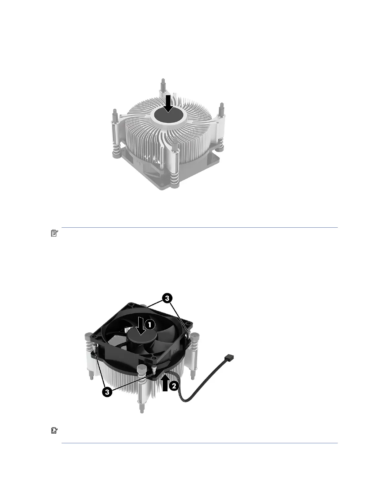 When installing the fan onto the heat sink, be sure that the fan cable is at the bottom of the fan.