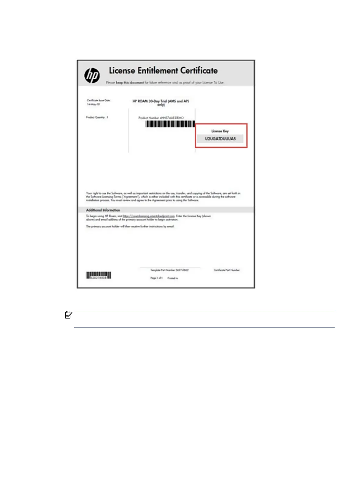 4. Locate the license key on the License Entitlement Certicate and make sure it matches the one received in
